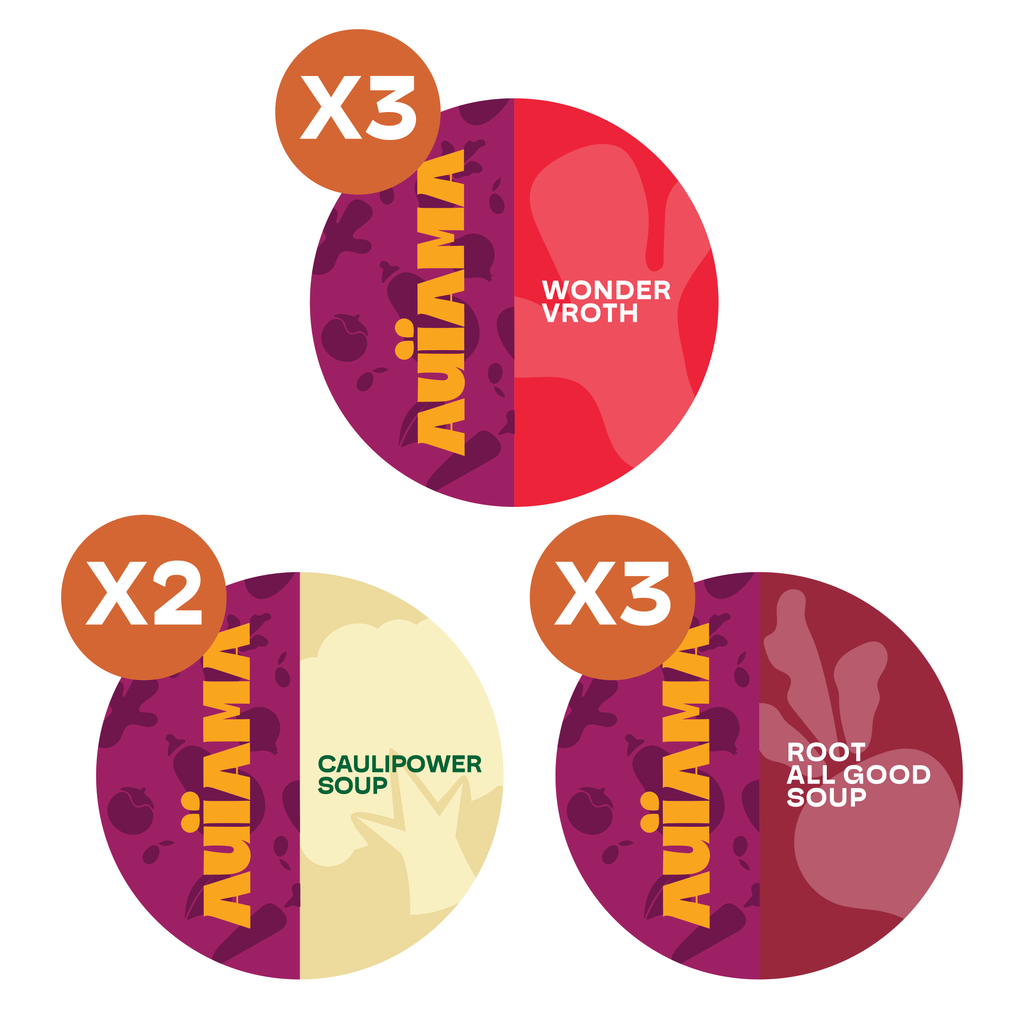 3X Wonder Vroth 2X Caulipower Soup 3X Root of All Good Soup